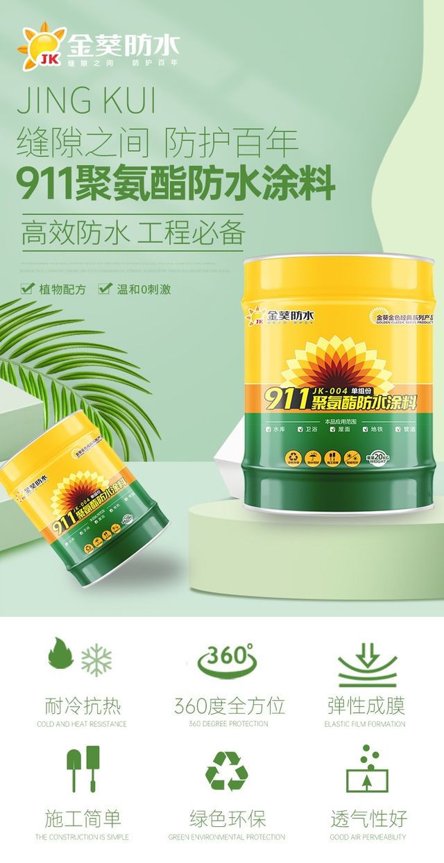 本产品具有防水涂料刮涂后它能吸收空气的湿气后而固化成膜的特点,从而客服了双组份聚氨酯防水涂料在使用前需现场调配混合的缺点。能在潮湿的基面上施工、具有良好的耐酸、耐碱、耐热耐寒、耐老化性能。粘结力强,能与混凝土、砖石、木材、玻璃、金属、橡胶等不同材料粘结。